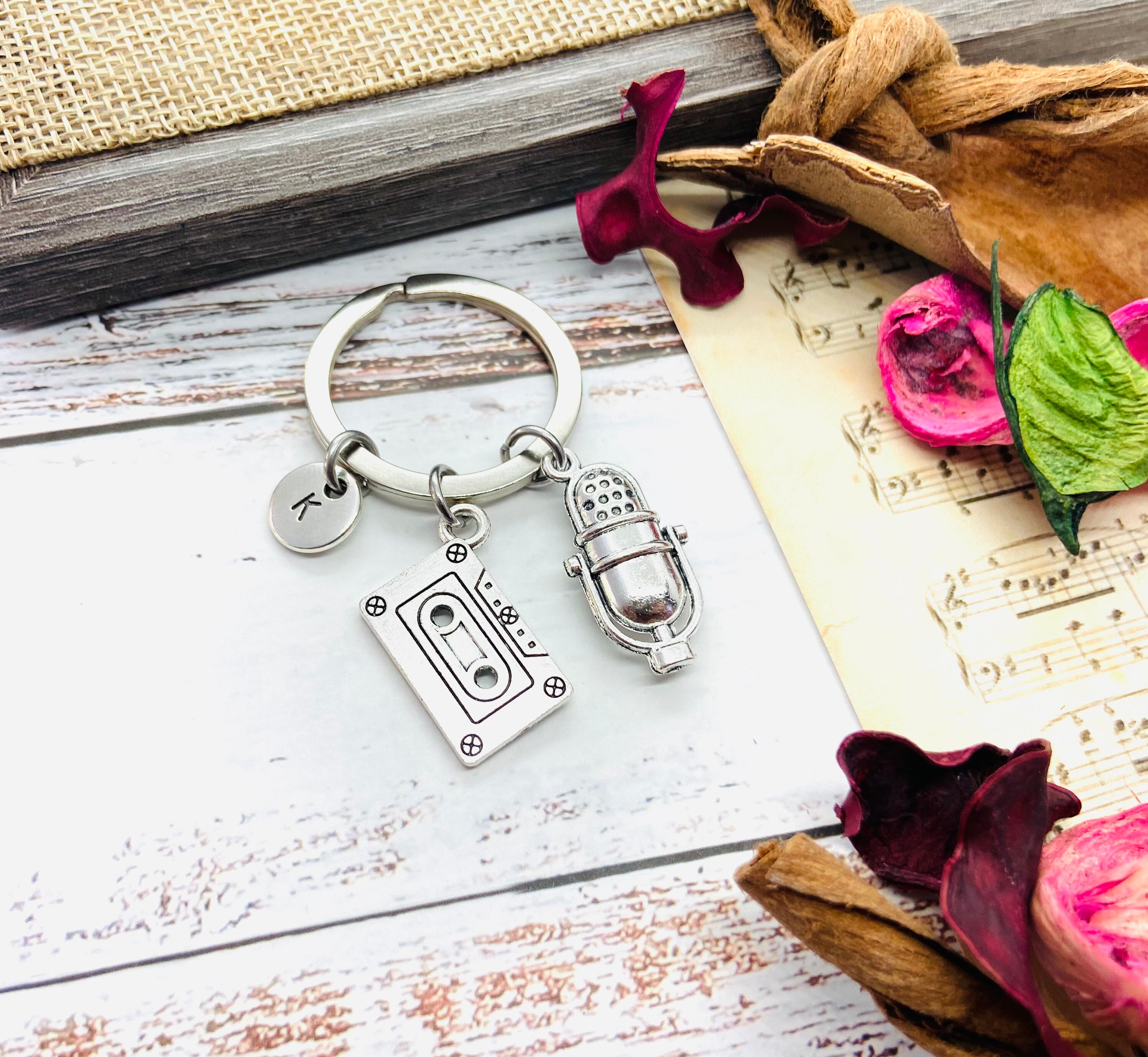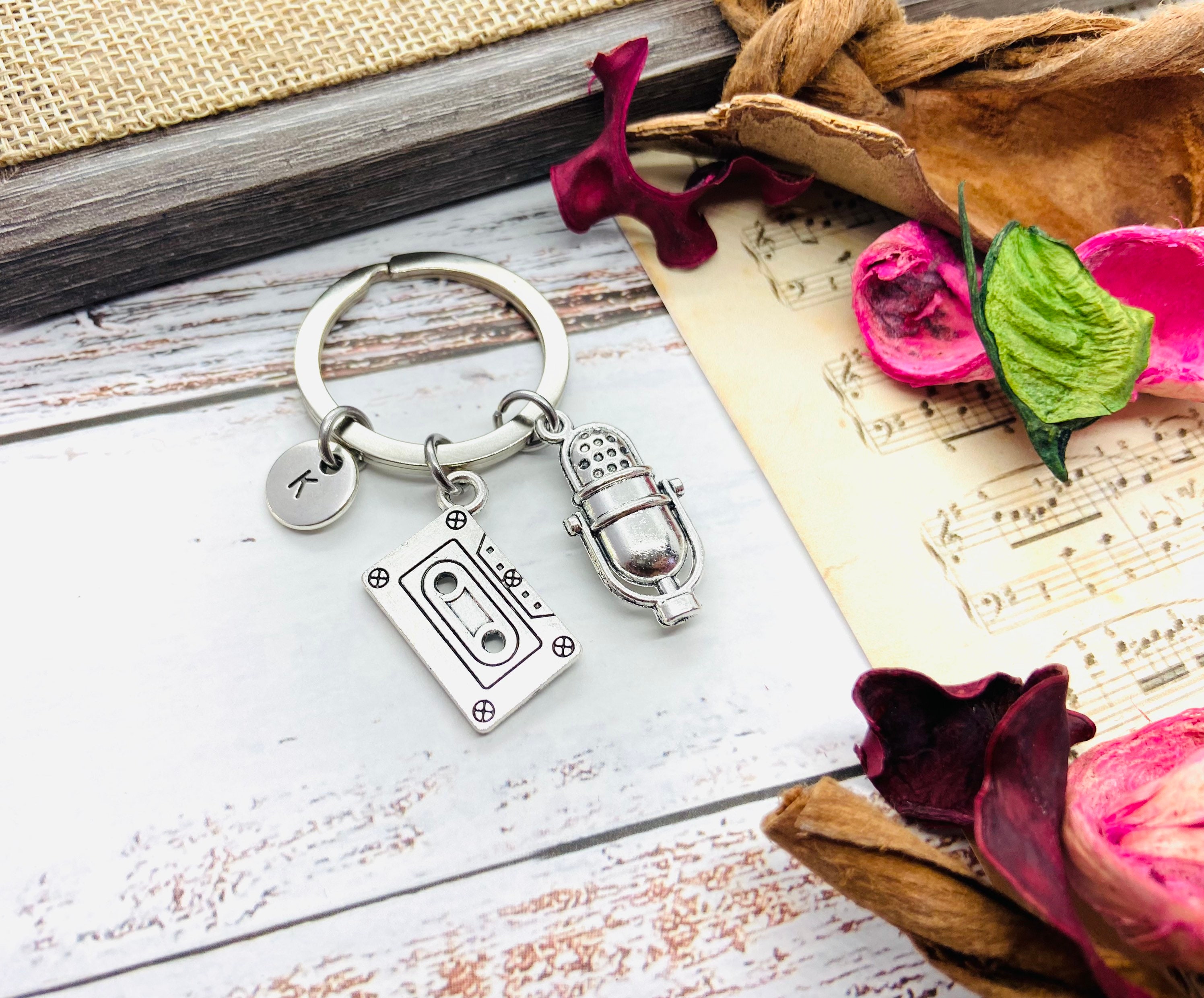 Music Lover Gift, Music Keychain, Music Keychain, Music Teacher Gift, Microphone Jewelry, Retro Music, Сassette Tape, Music Student, Unique