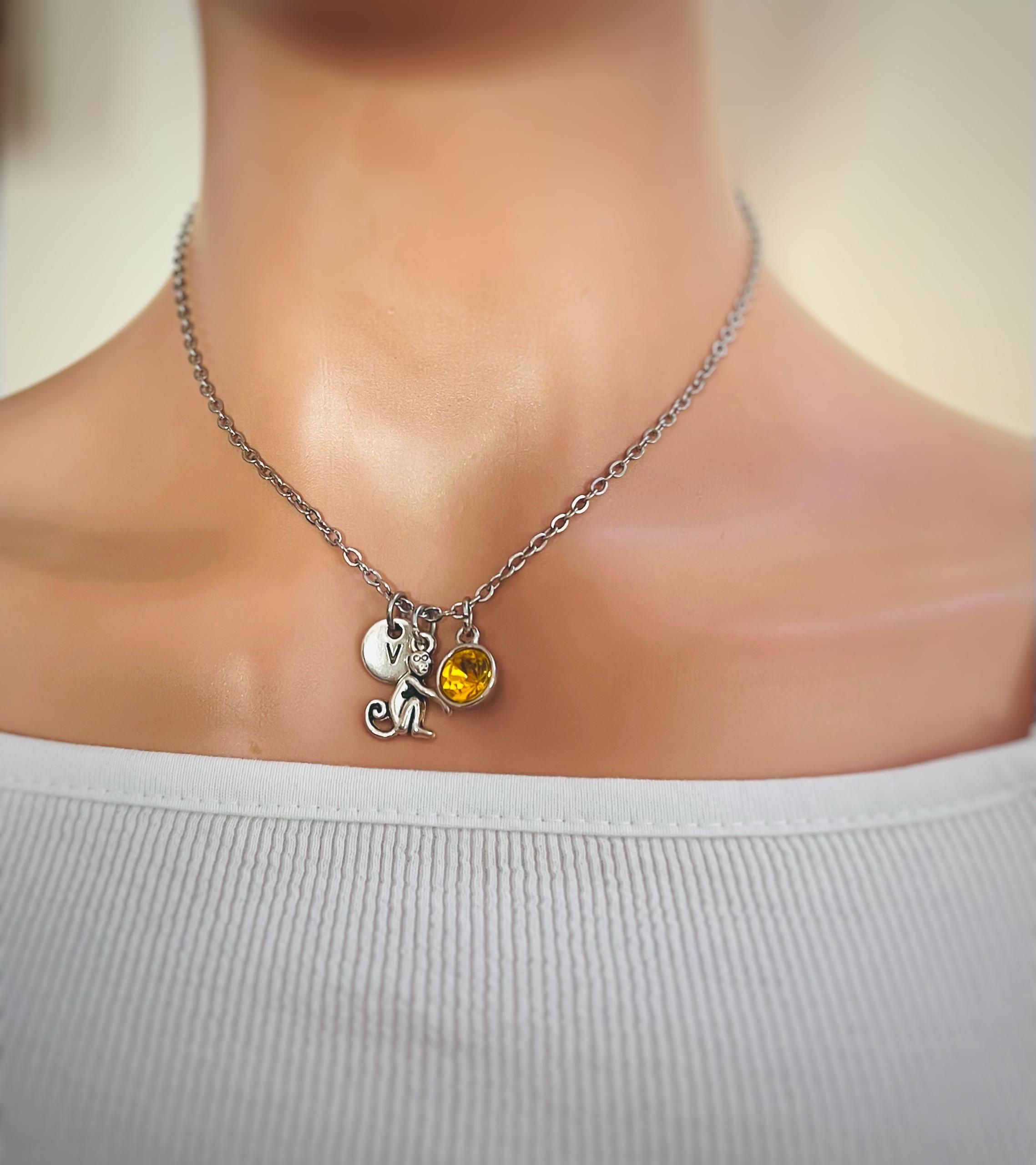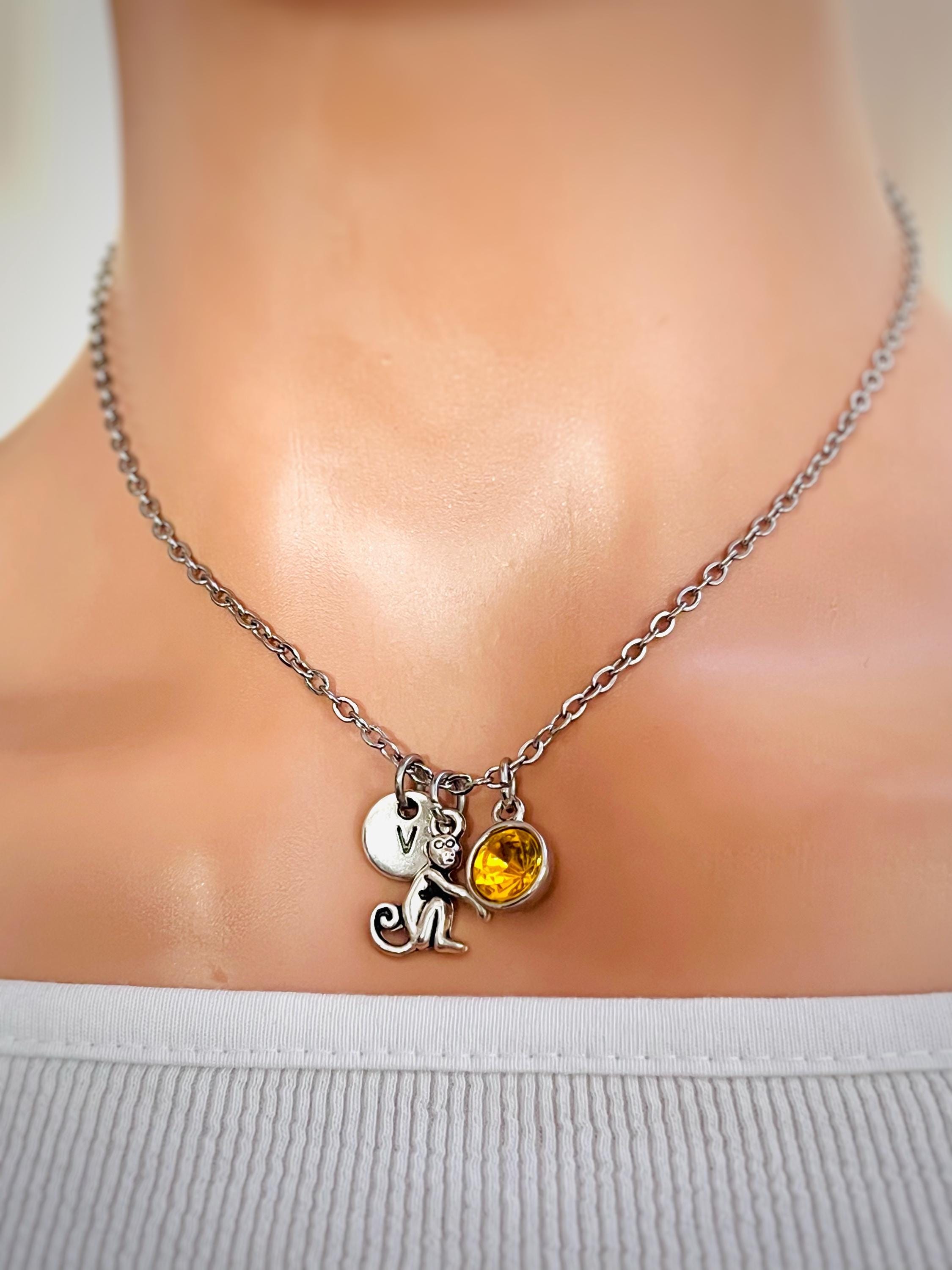 Monkey Necklace, Monkey Jewelry, Monkey Animal Themed Gift, Monkey Lover, Monkey Fan, Little Monkey, Chimpanzee, Birthday, Friends
