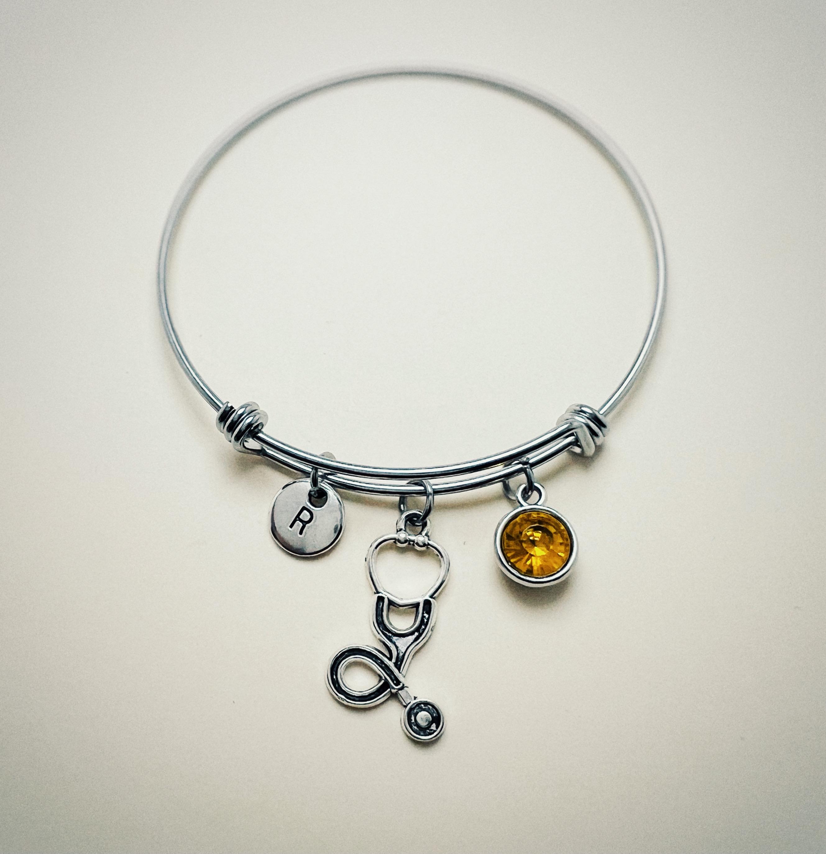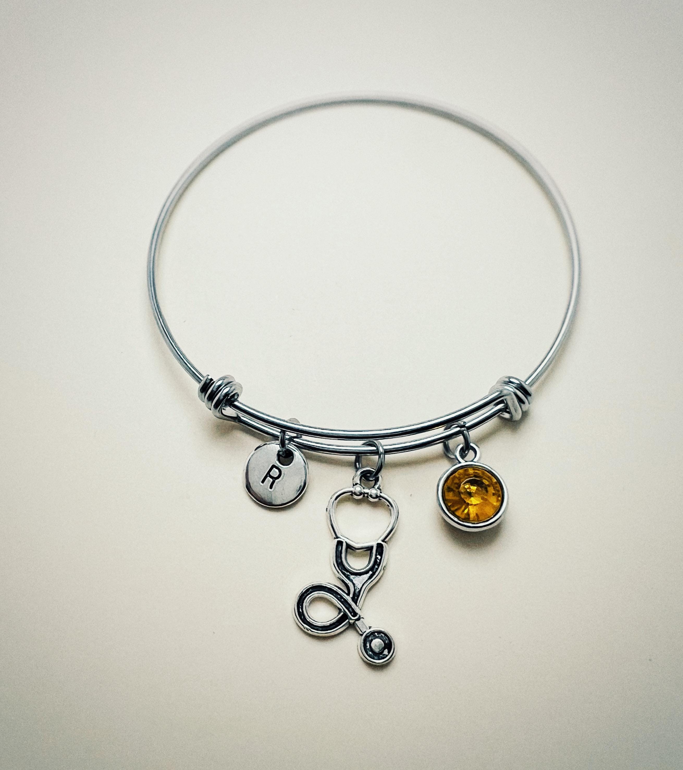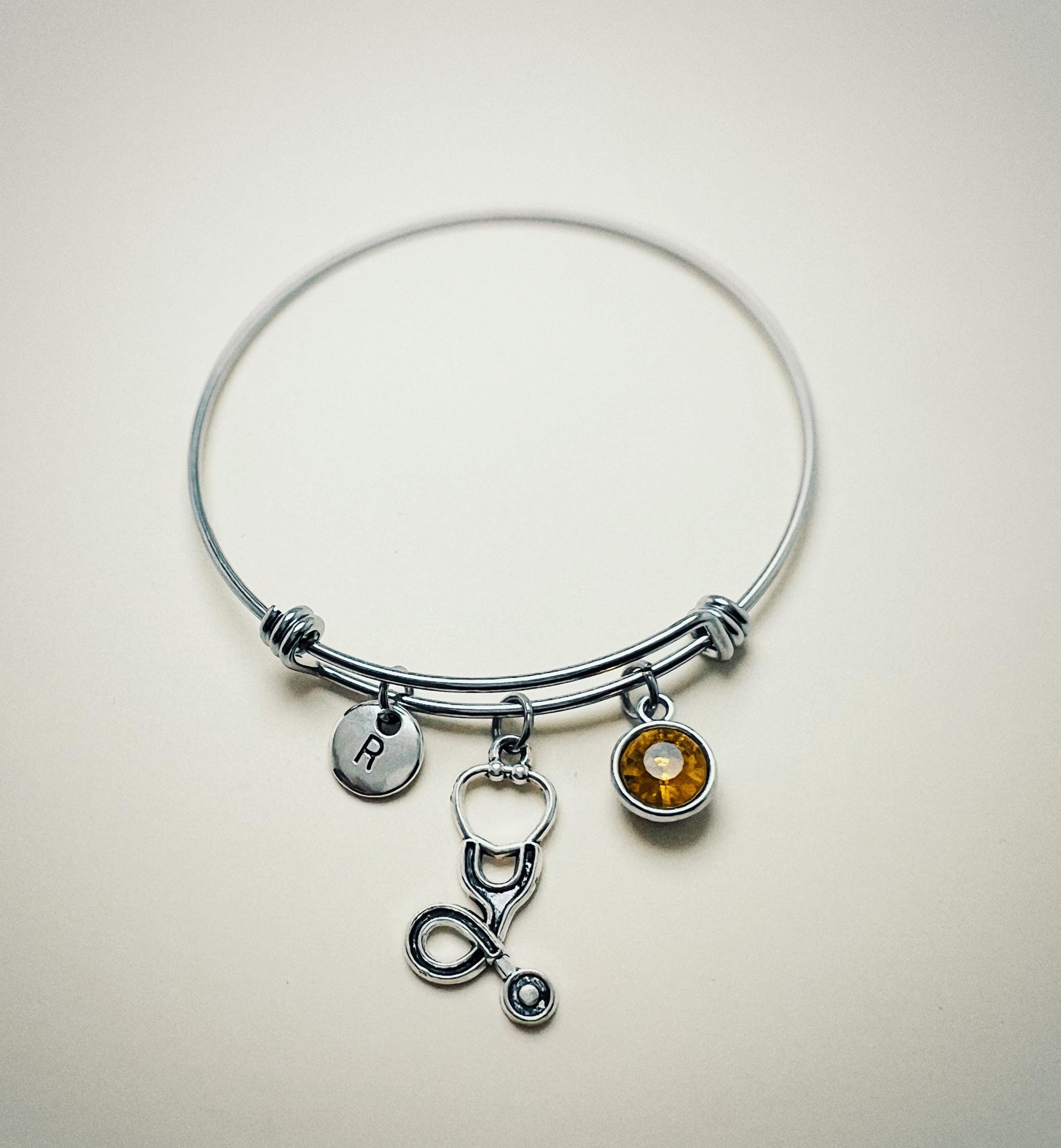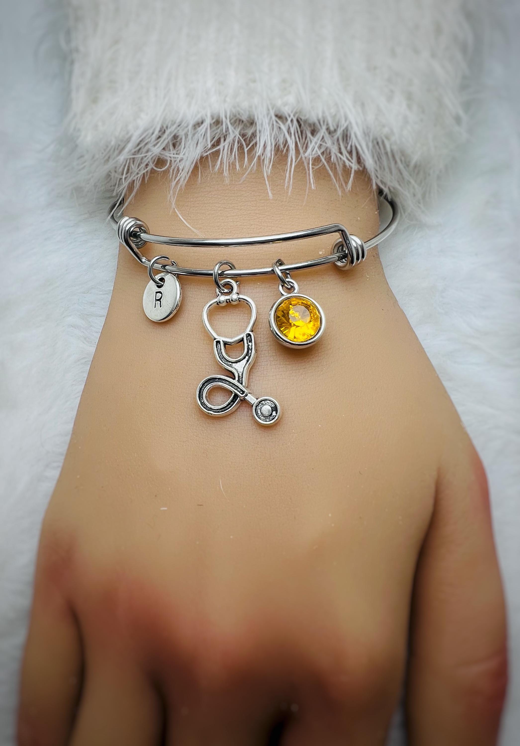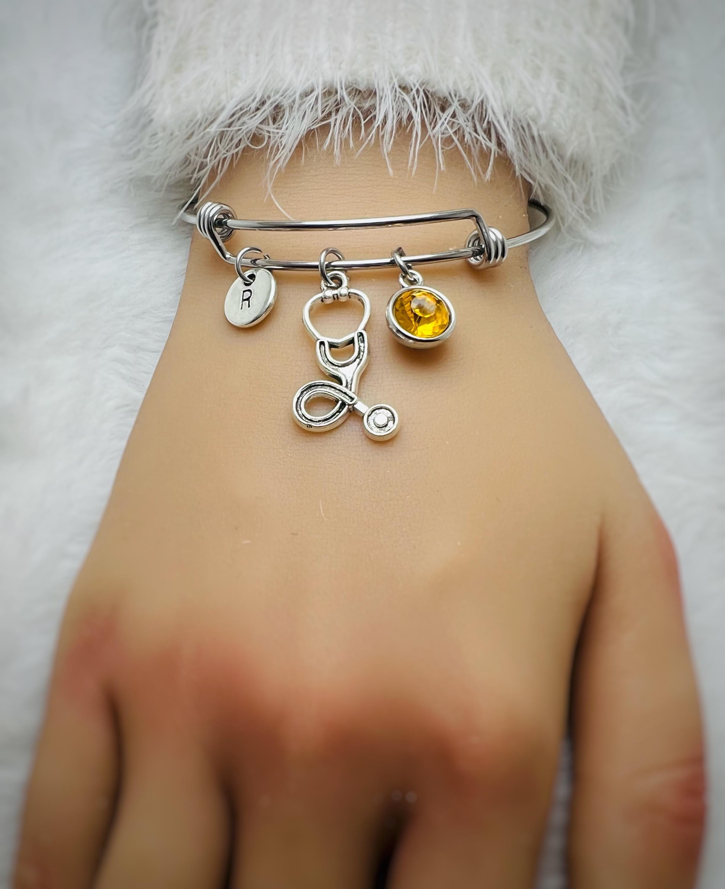 Stethoscope Bracelet, with Personalized Birthstone, Medical Graduation Gift, Heart Stethoscope Charm,Stethoscope Bracelet