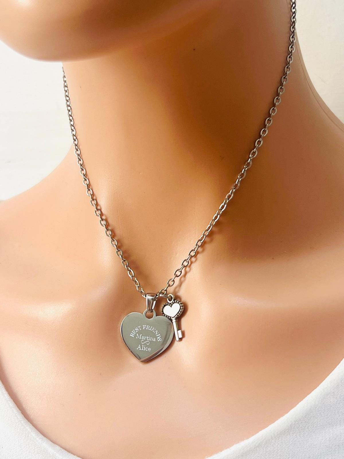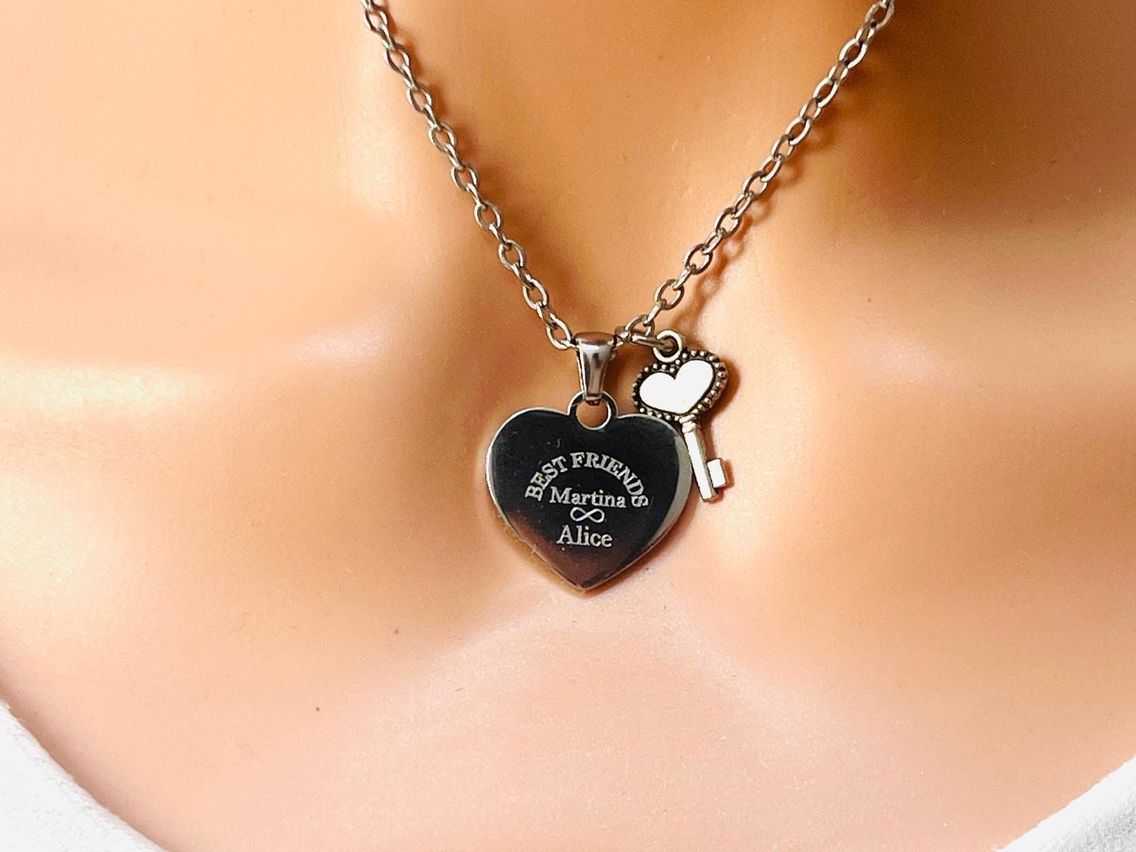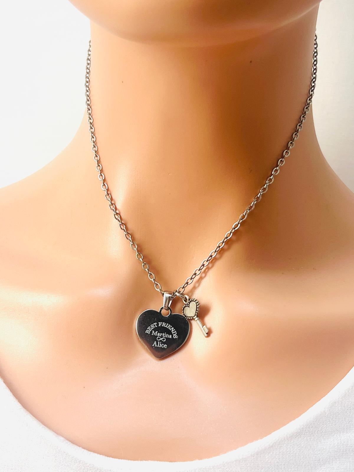 Personalized Engraved Heart Necklace with Key, Best Friend Gift, Personalized Name Necklace, Gift for Her Friends, Daughter, Mom, Girlfriend NaNa
