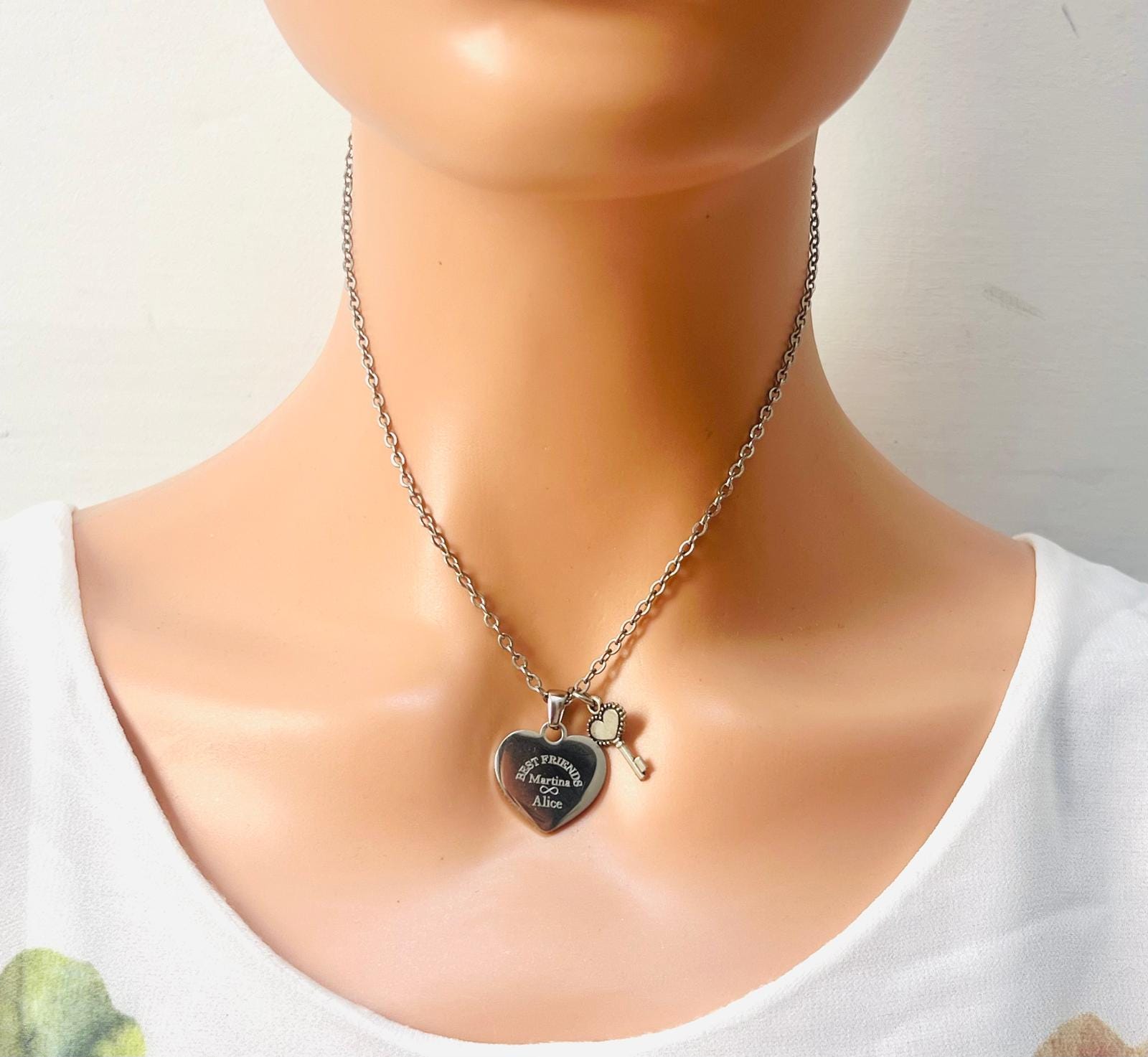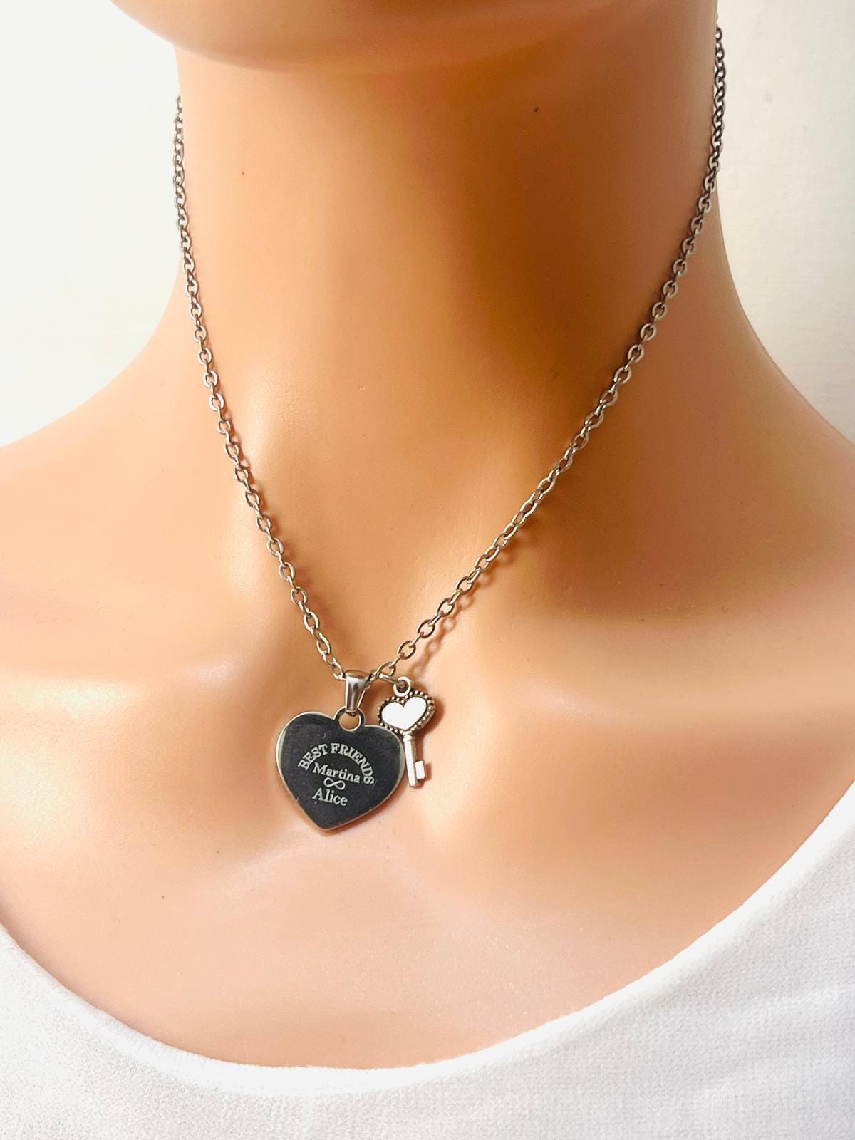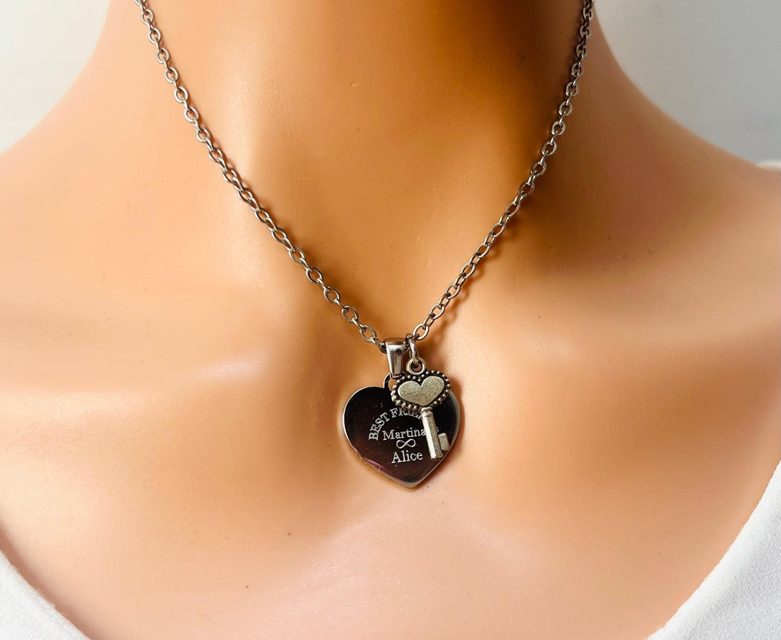 Personalized Engraved Heart Necklace with Key, Best Friend Gift, Personalized Name Necklace, Gift for Her Friends, Daughter, Mom, Girlfriend NaNa