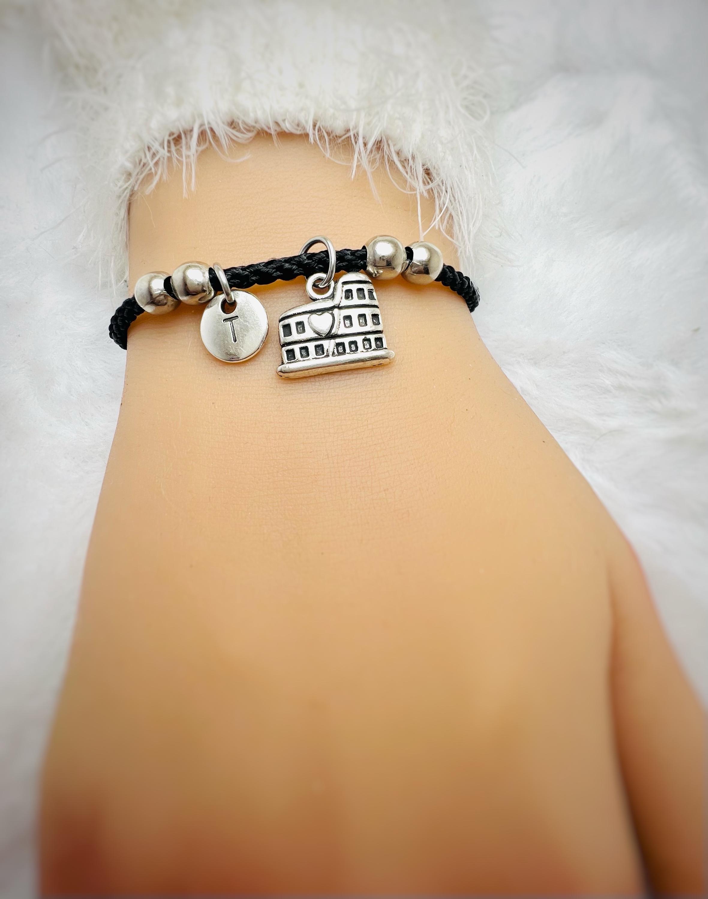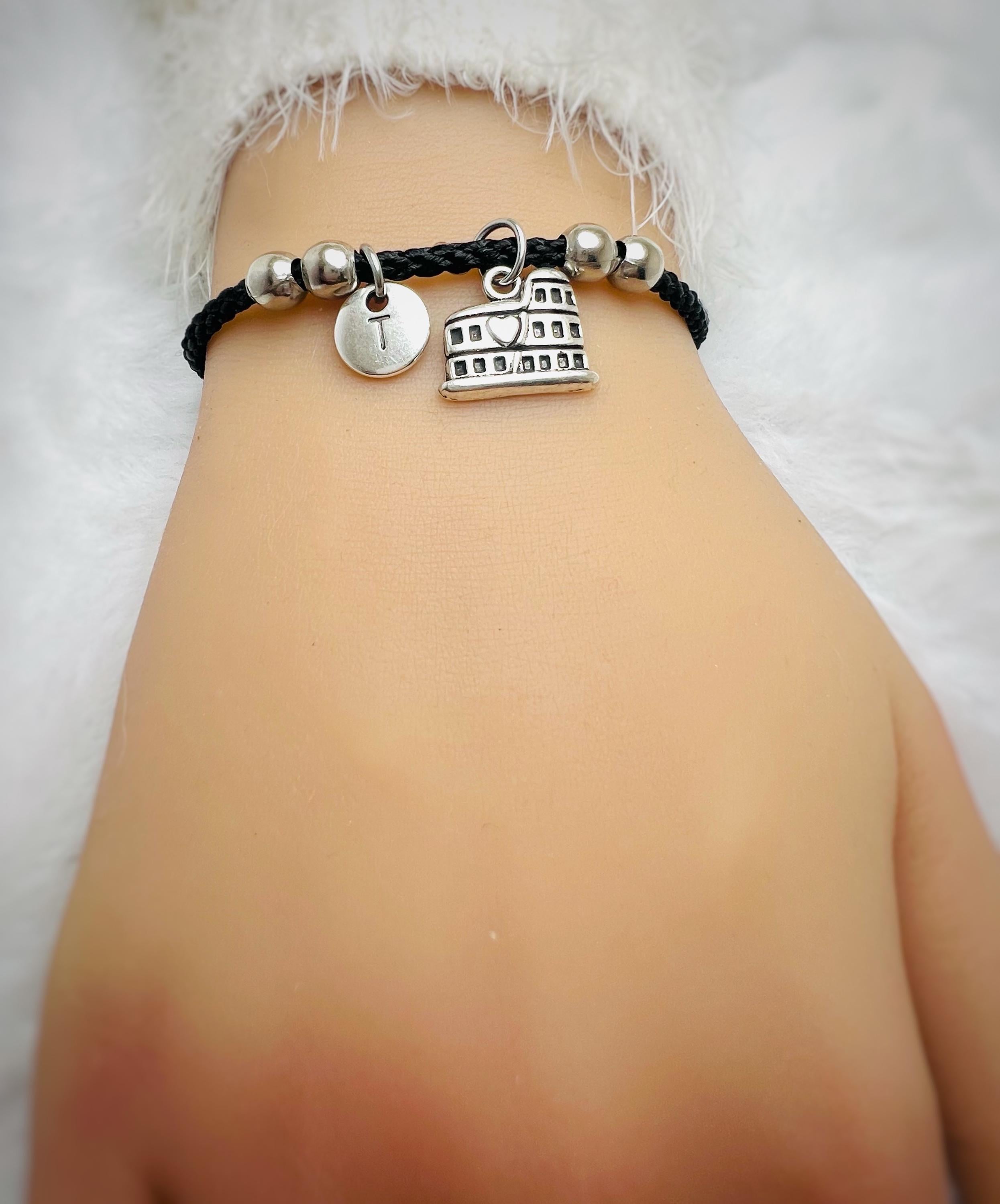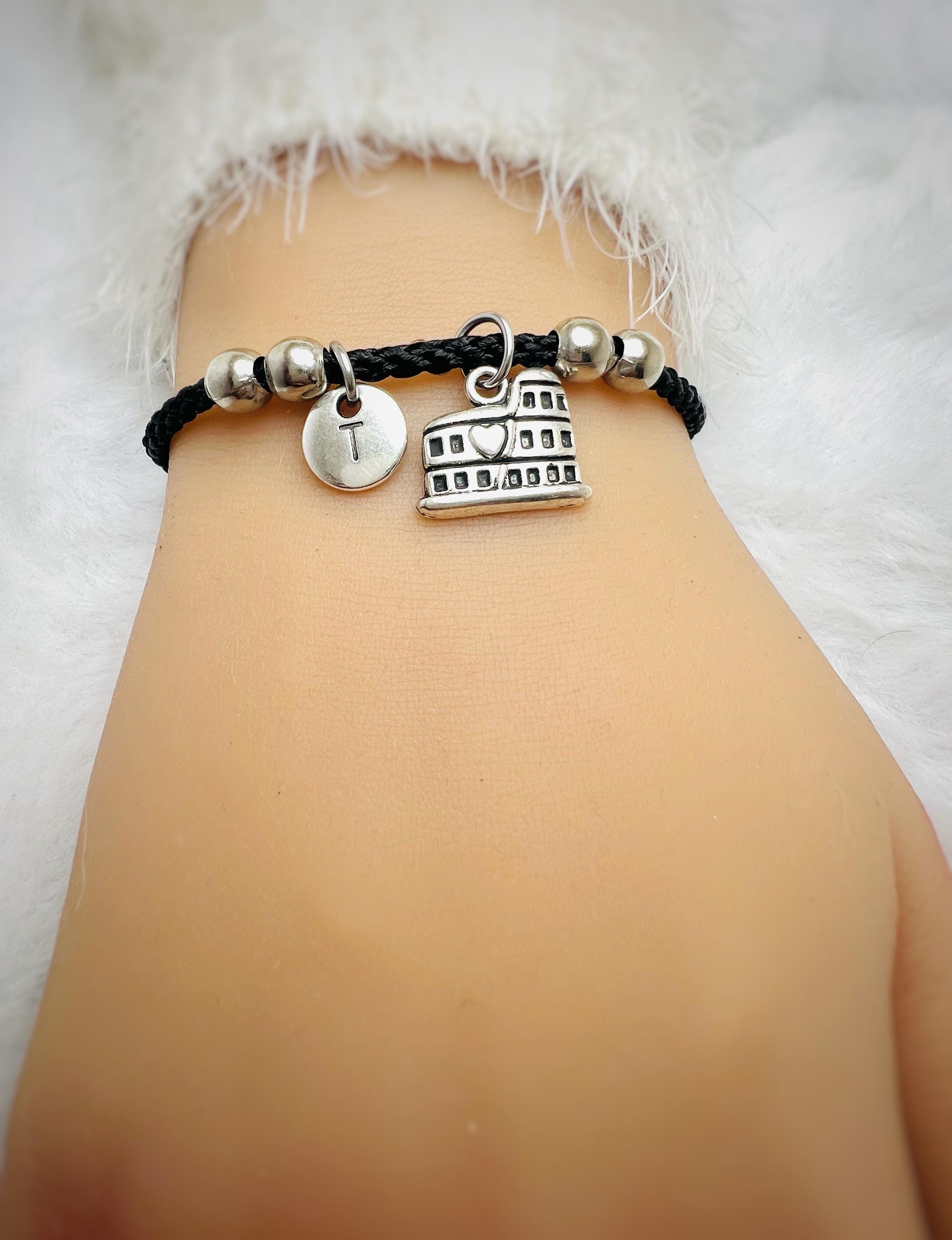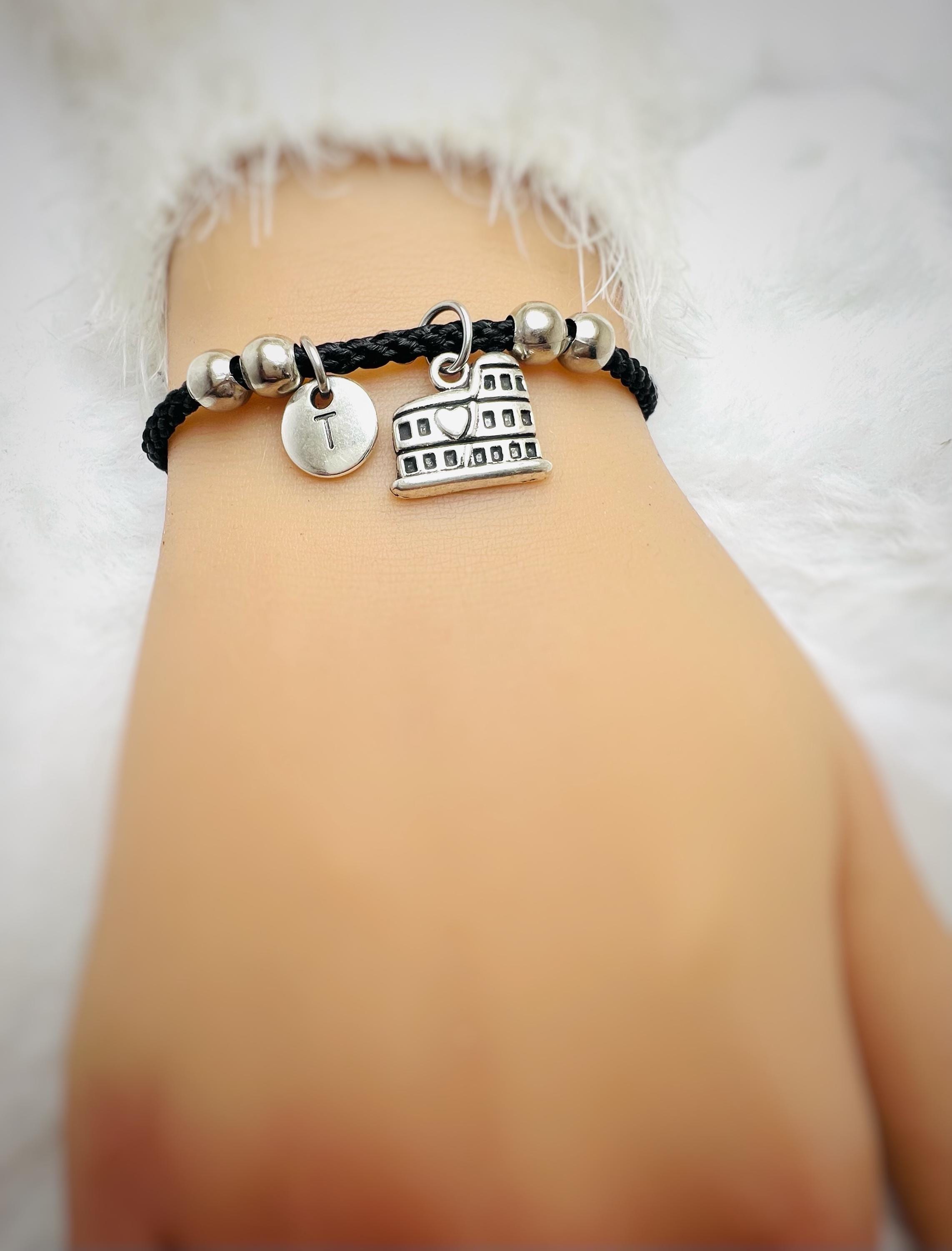 Colosseum rope bracelet, Colosseum charm bracelet, Adjustable bracelet, bracelet, personalized bracelet, initial bracelet, monogram