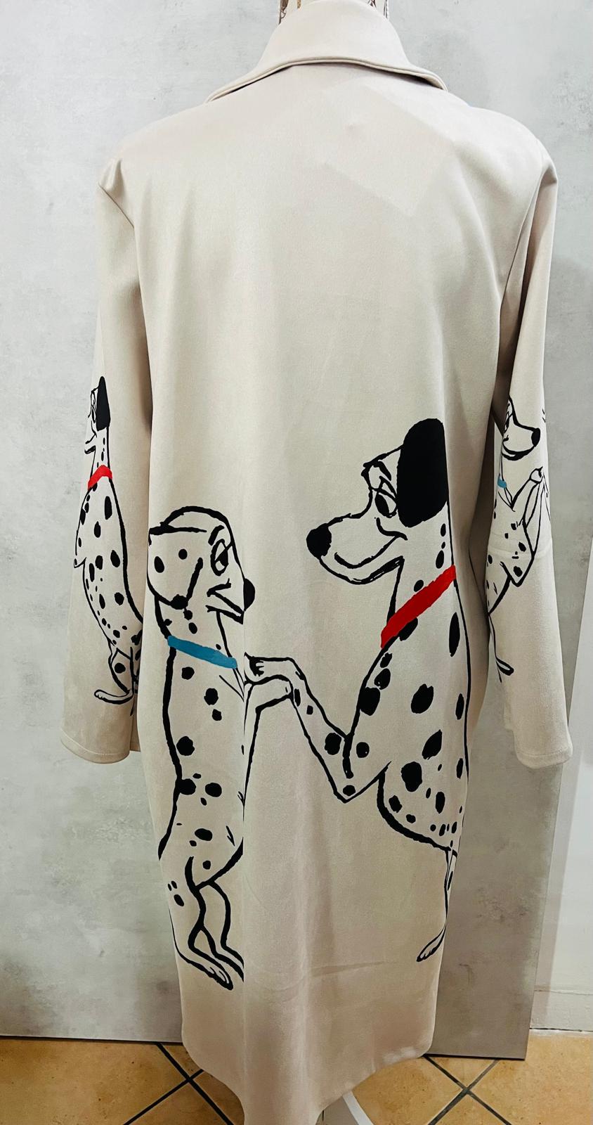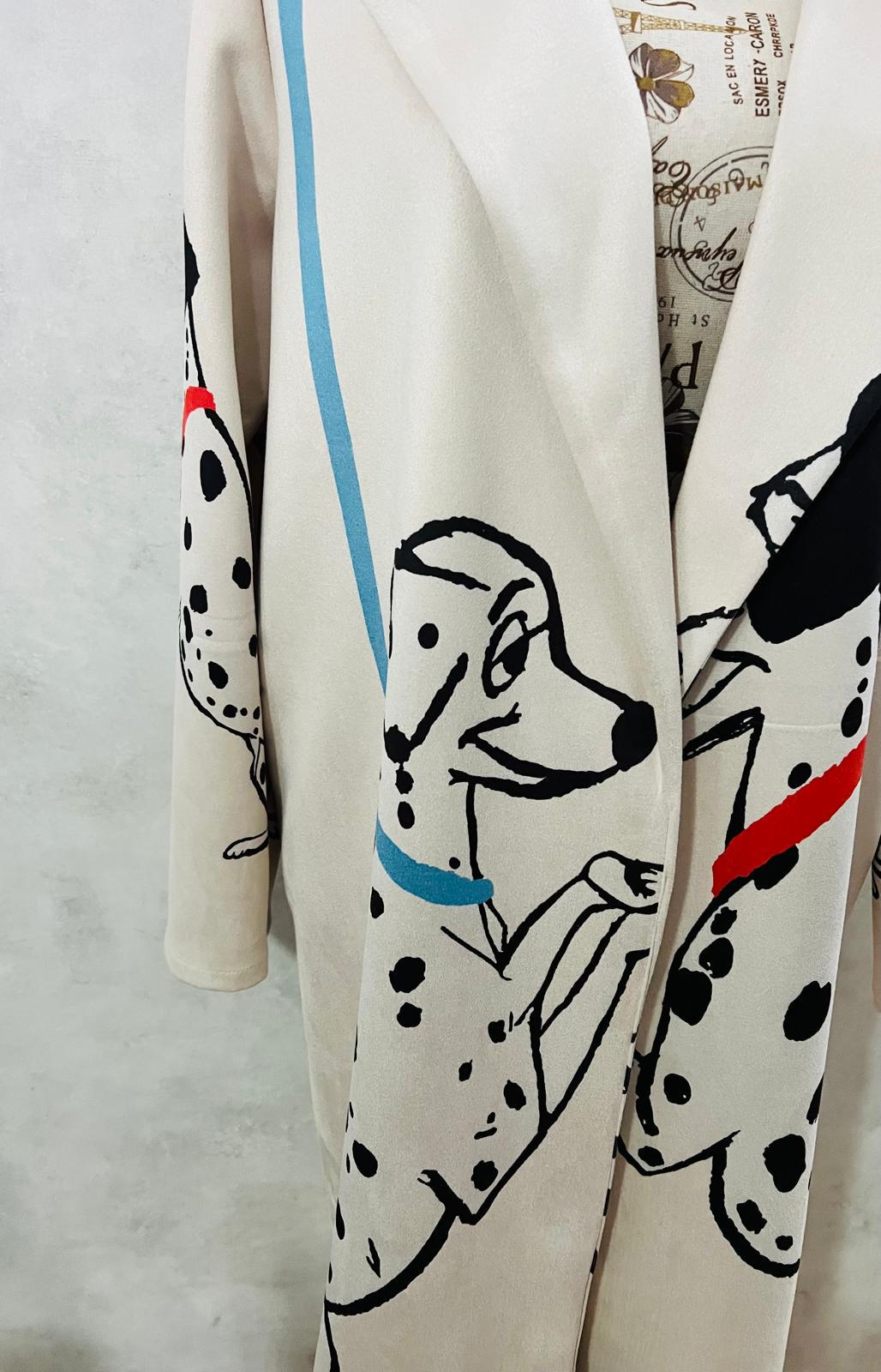 Long suede blazer jacket with 101 Dalmatians print, made in Italy, gift for her, women's jacket, gifts for girls