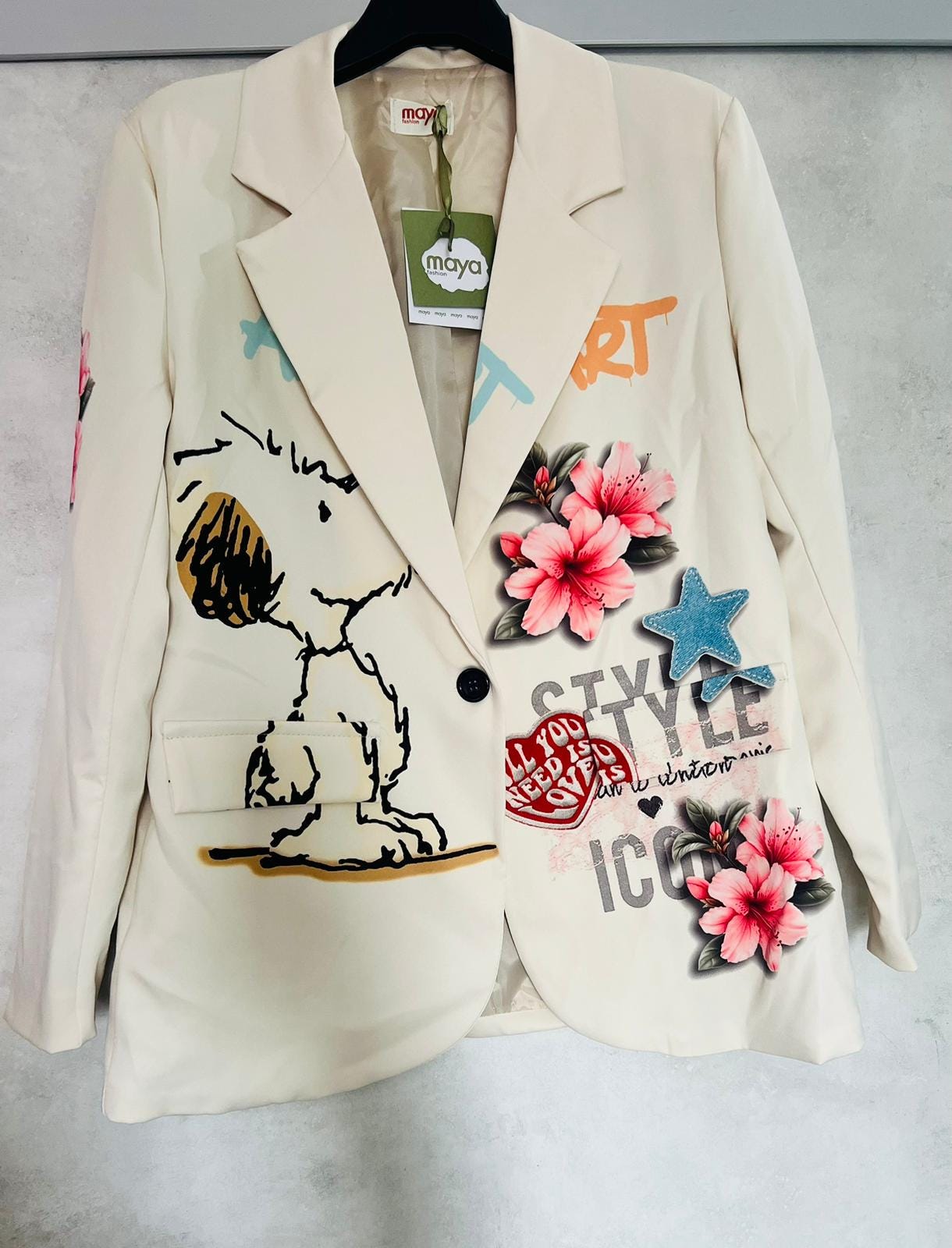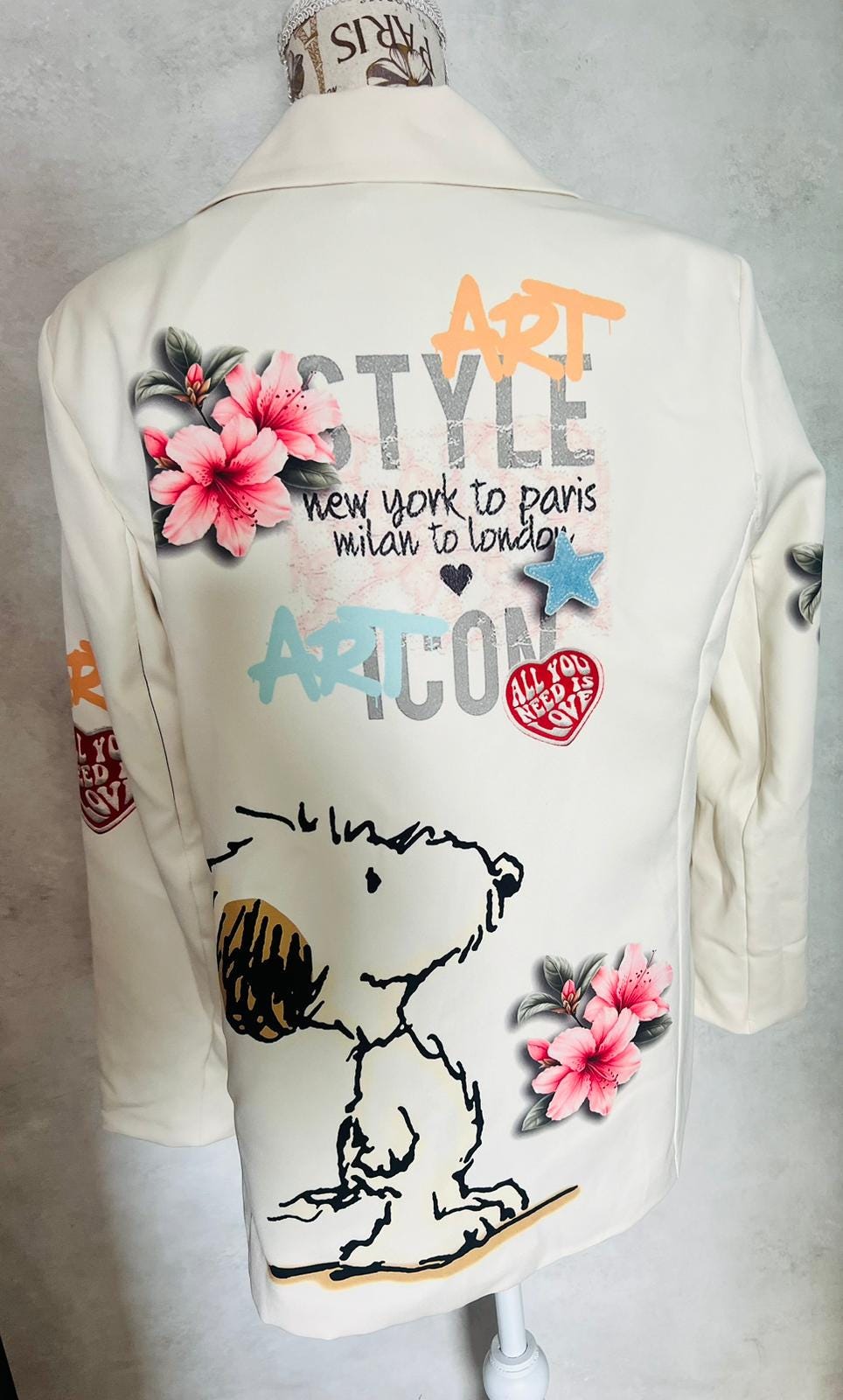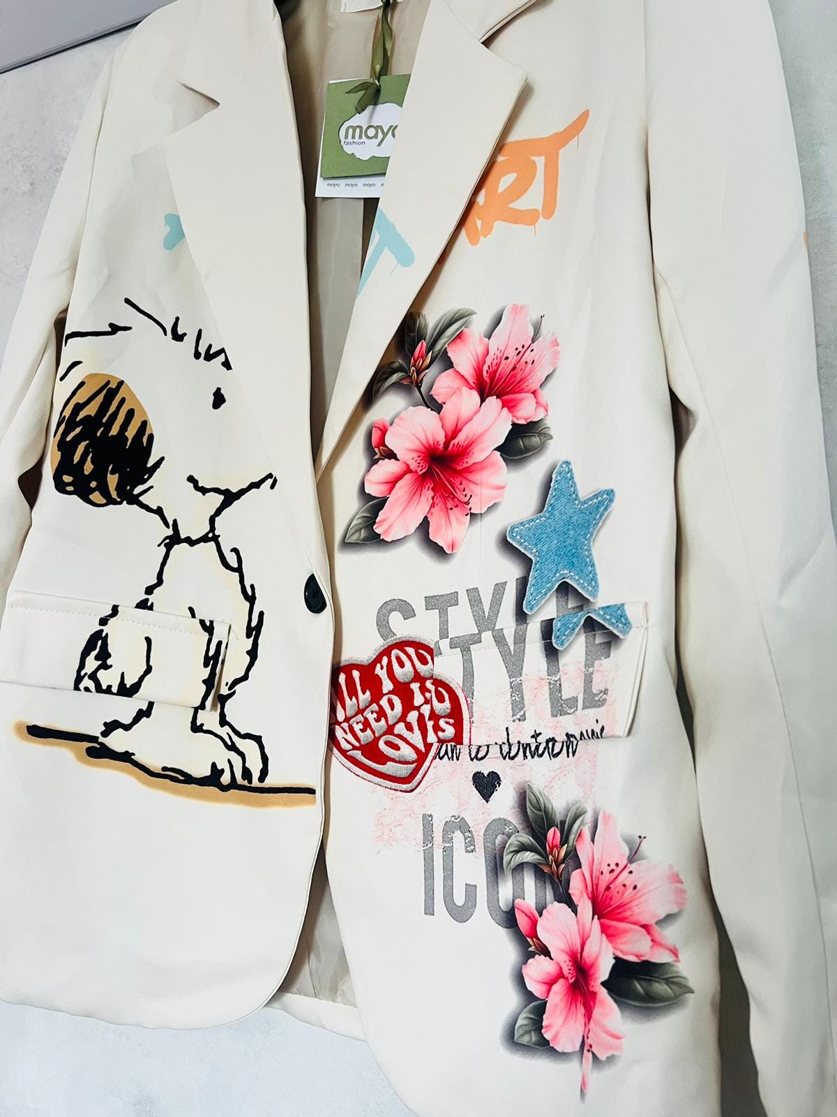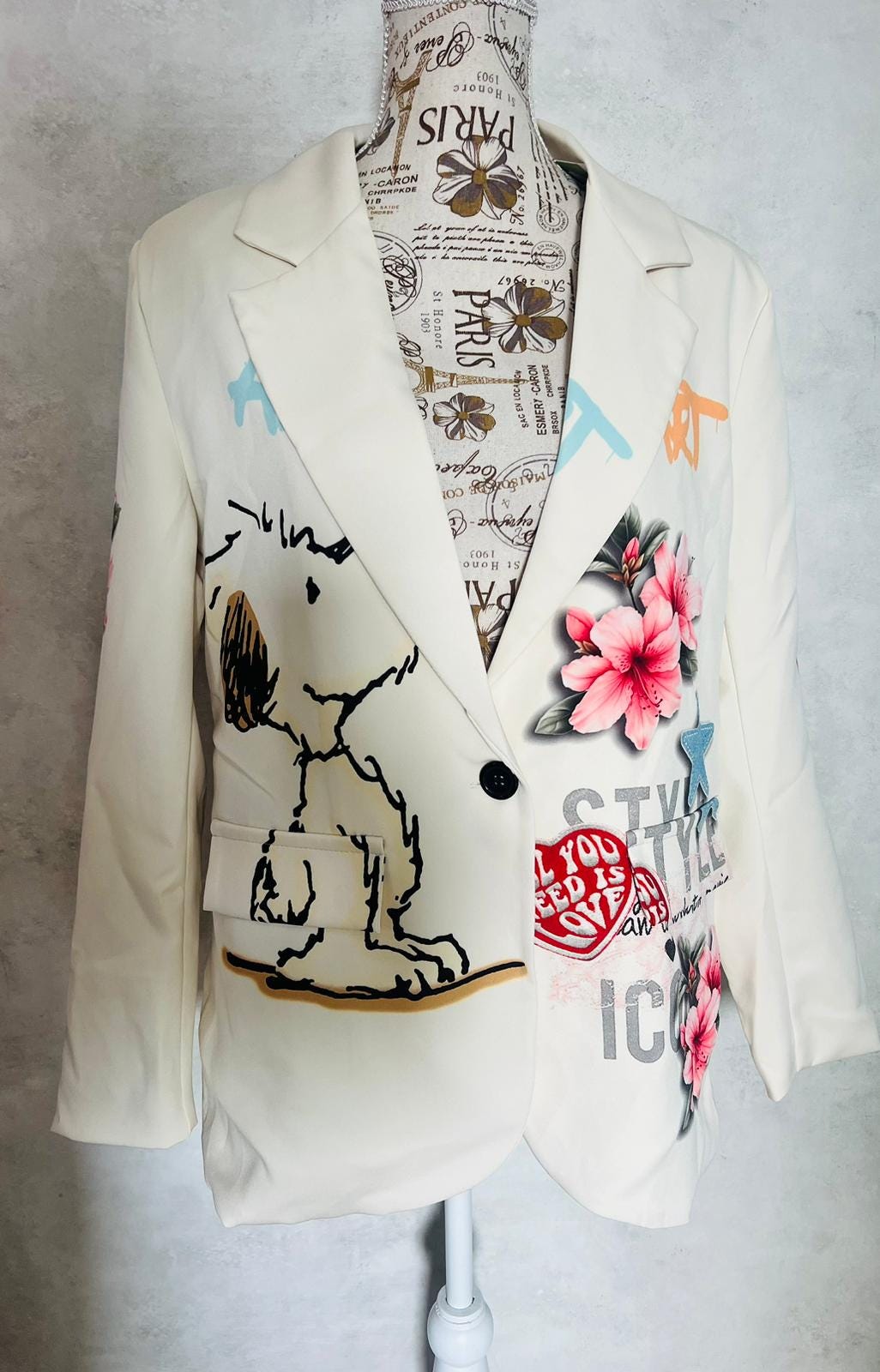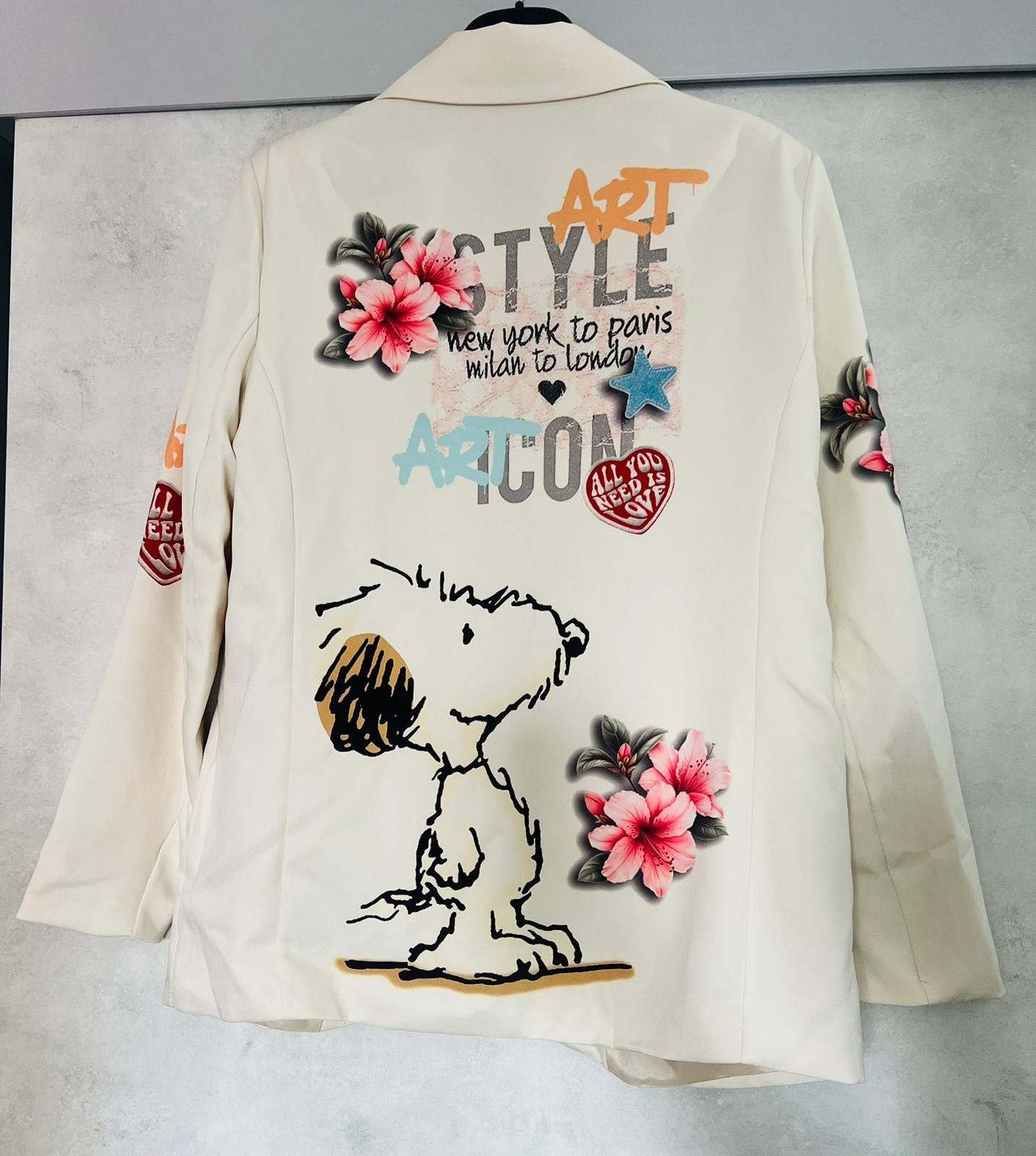 Snoopy character print jacket, flower jacket, made in Italy, peanuts jacket, girl's gift, women's jacket, gifts for friends