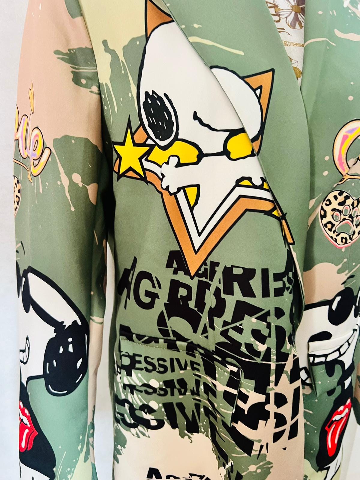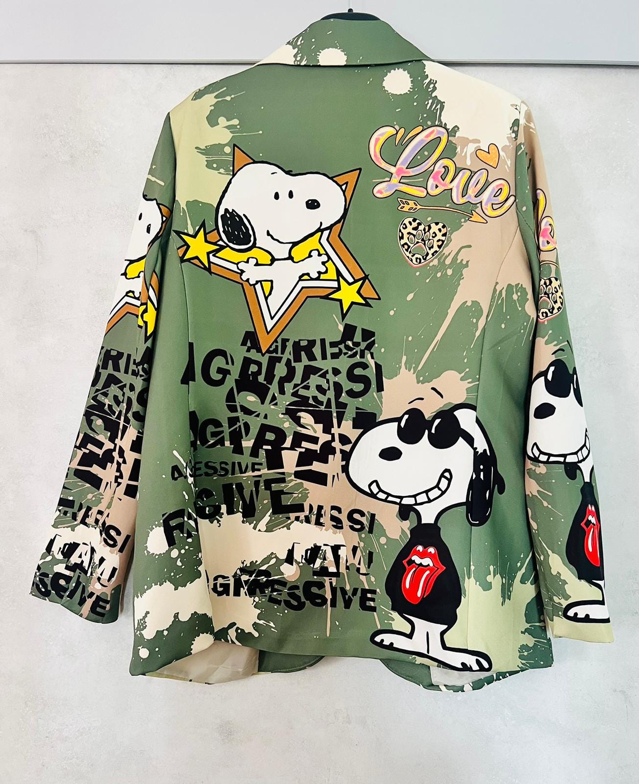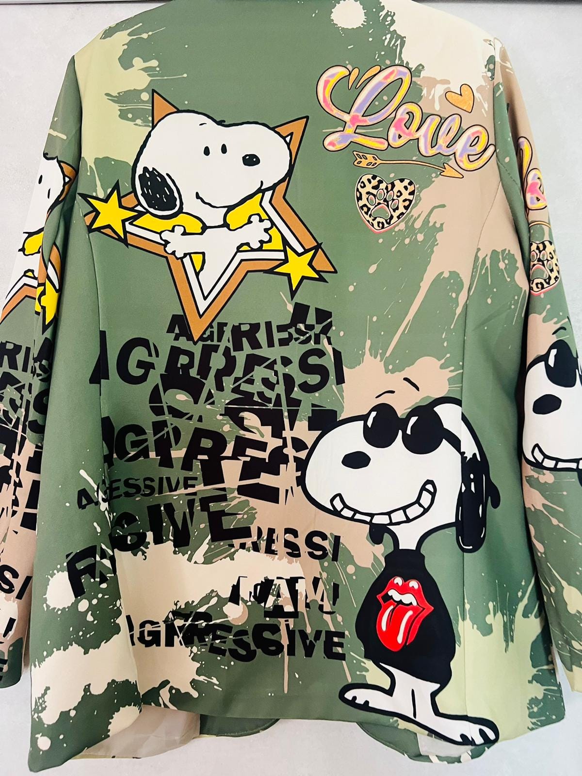 Snoopy print jacket, character print, made in Italy, gift for her, women's jacket, gifts for girls, military jacket