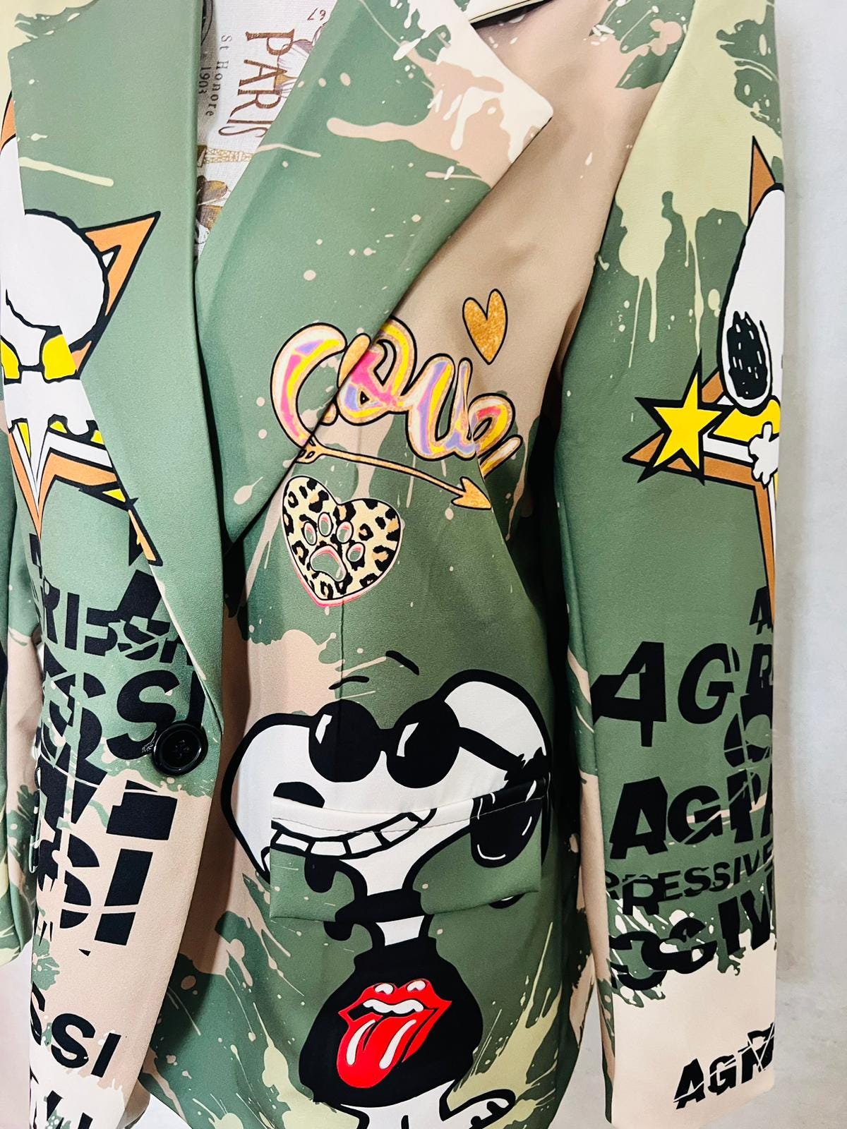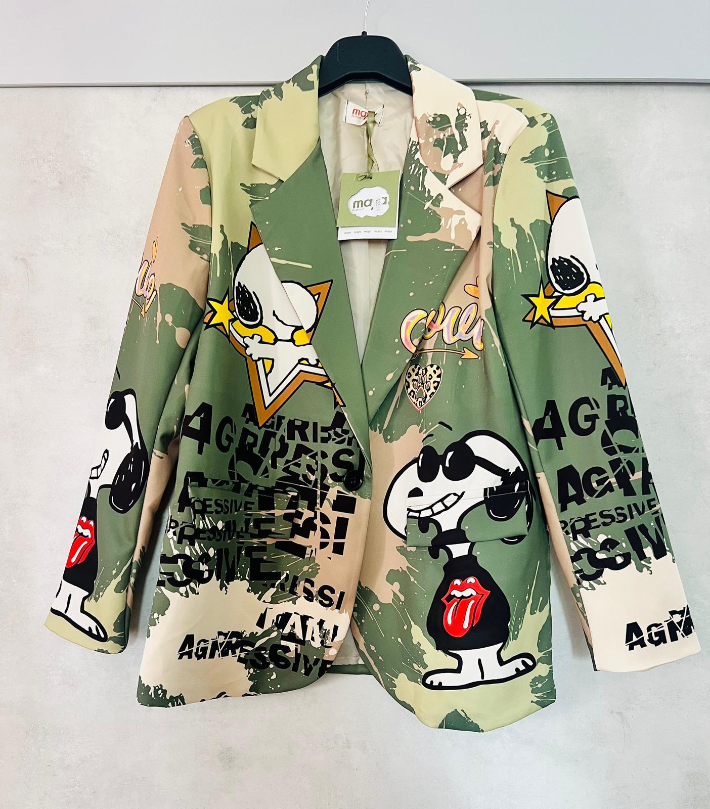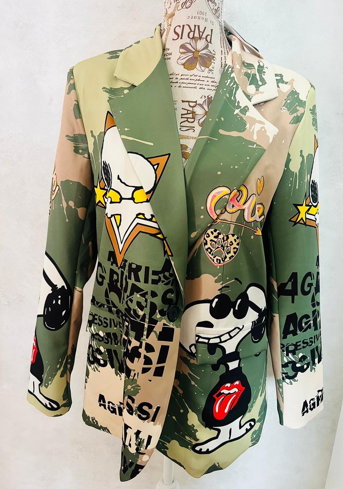 Snoopy print jacket, character print, made in Italy, gift for her, women's jacket, gifts for girls, military jacket
