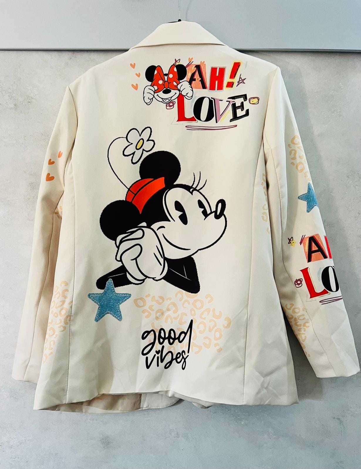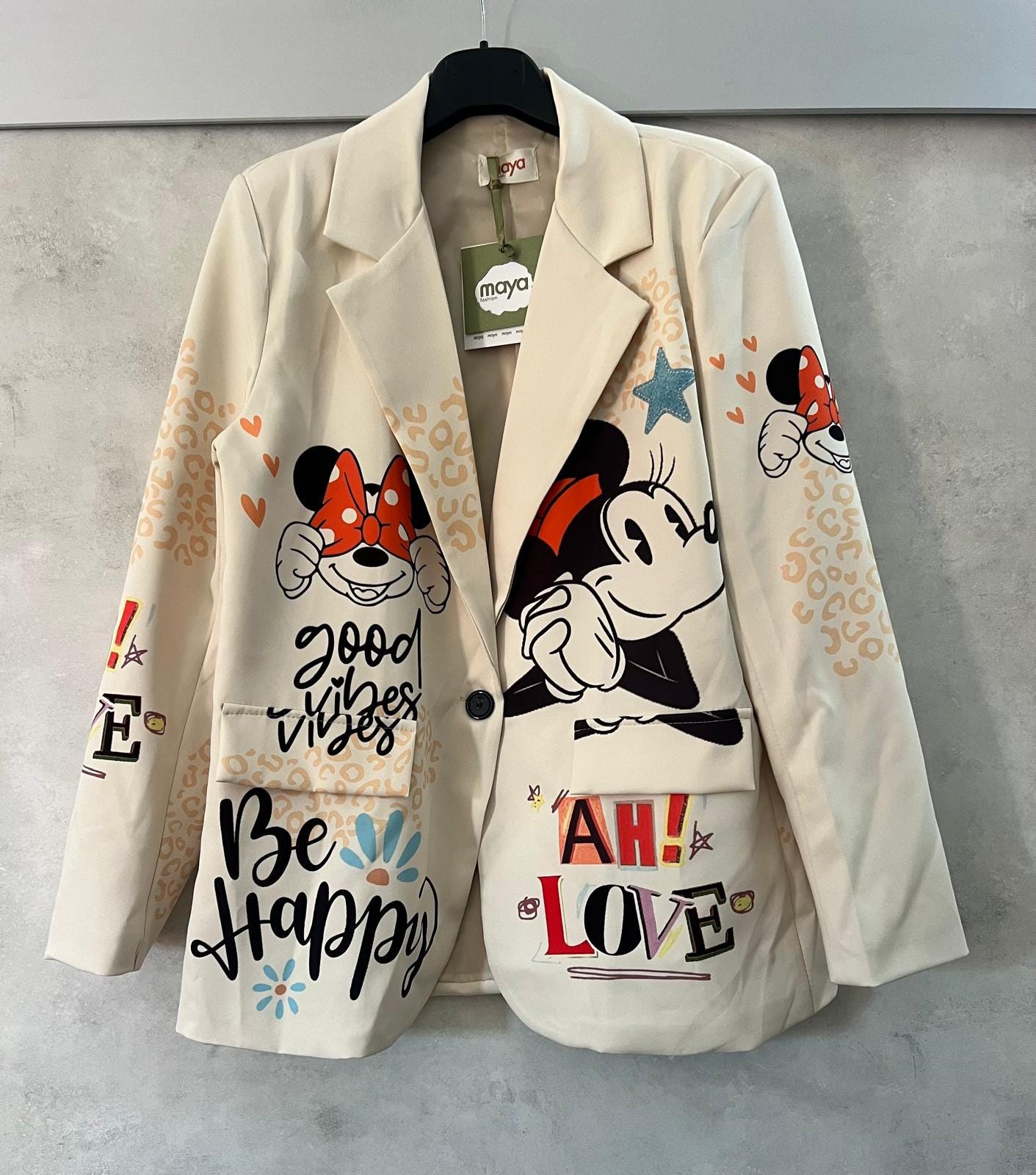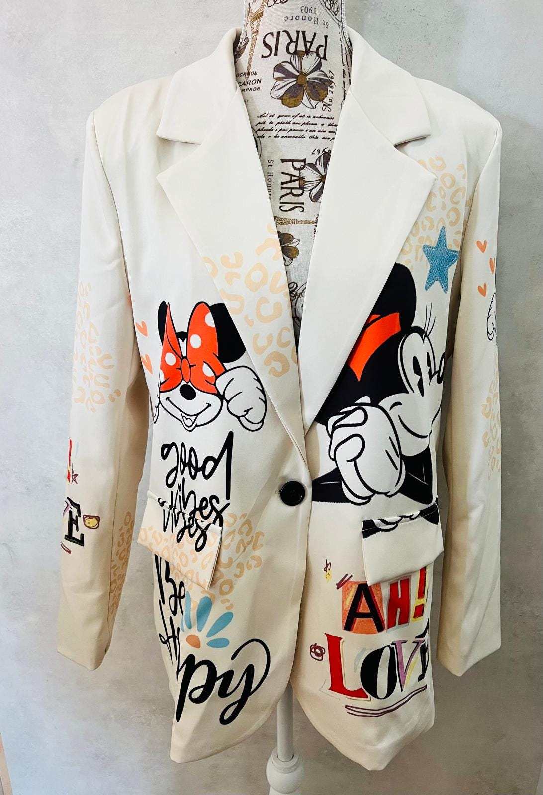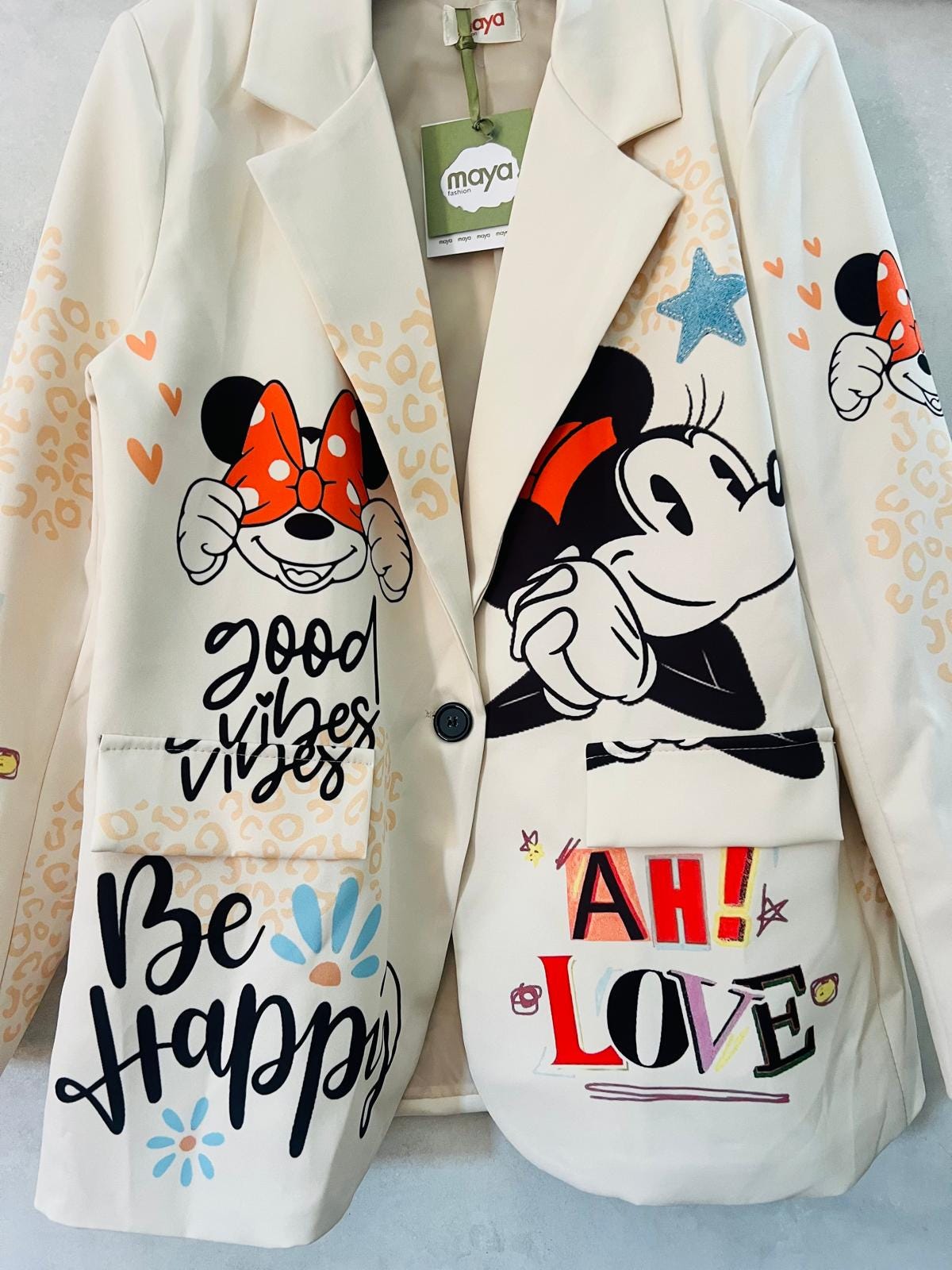 Minnie Mouse print jacket, good vibes print, made in Italy, gift for her, women's jacket, gifts for girls, Minnie Love jacket
