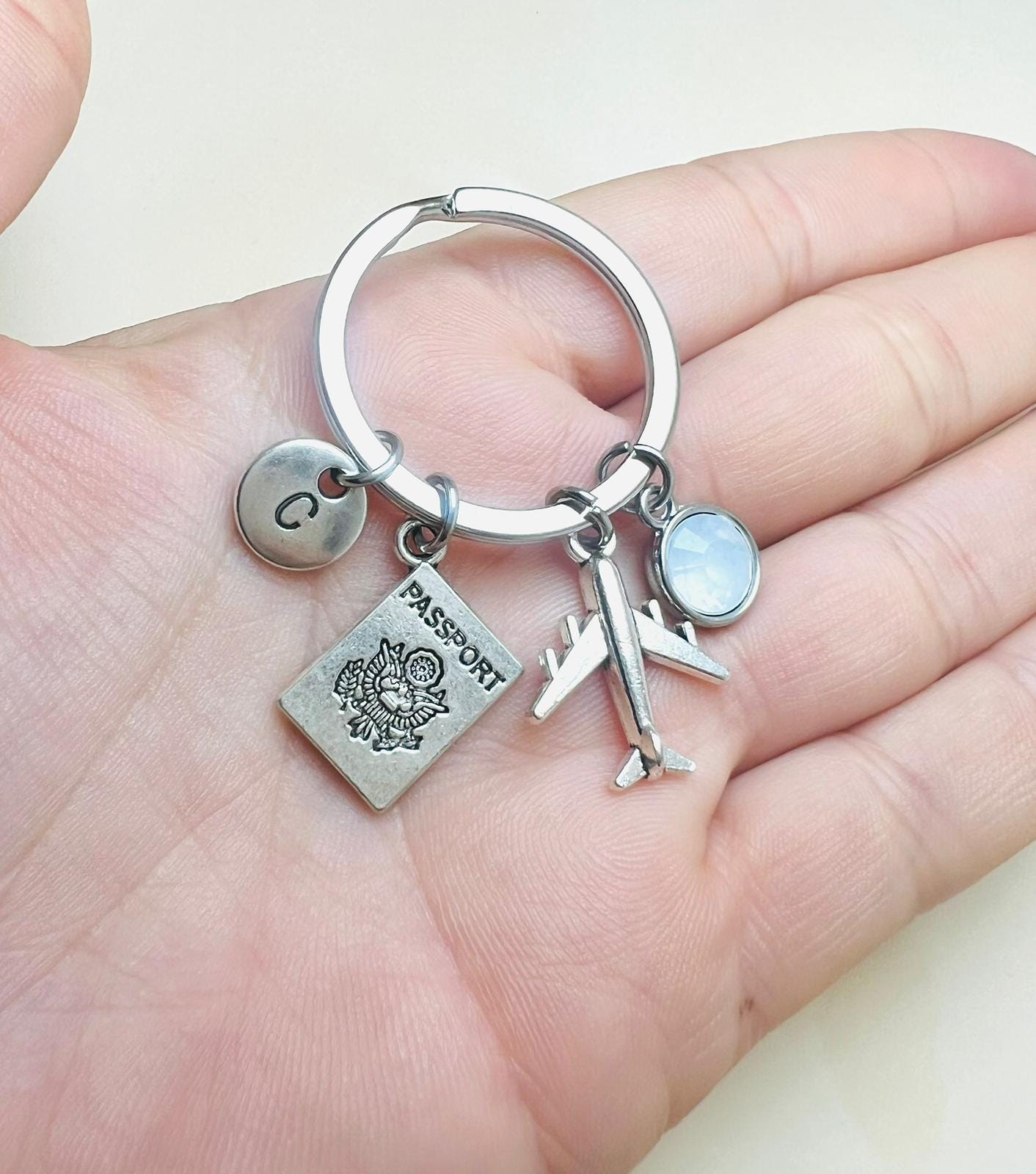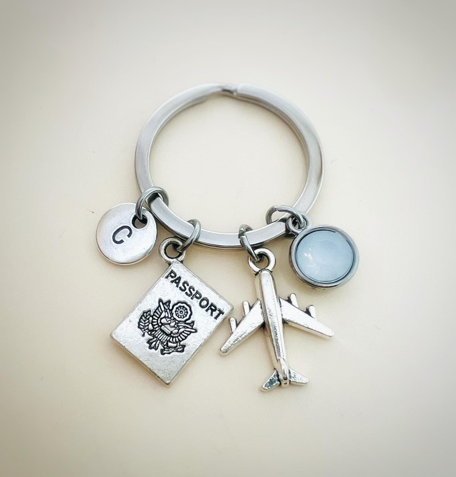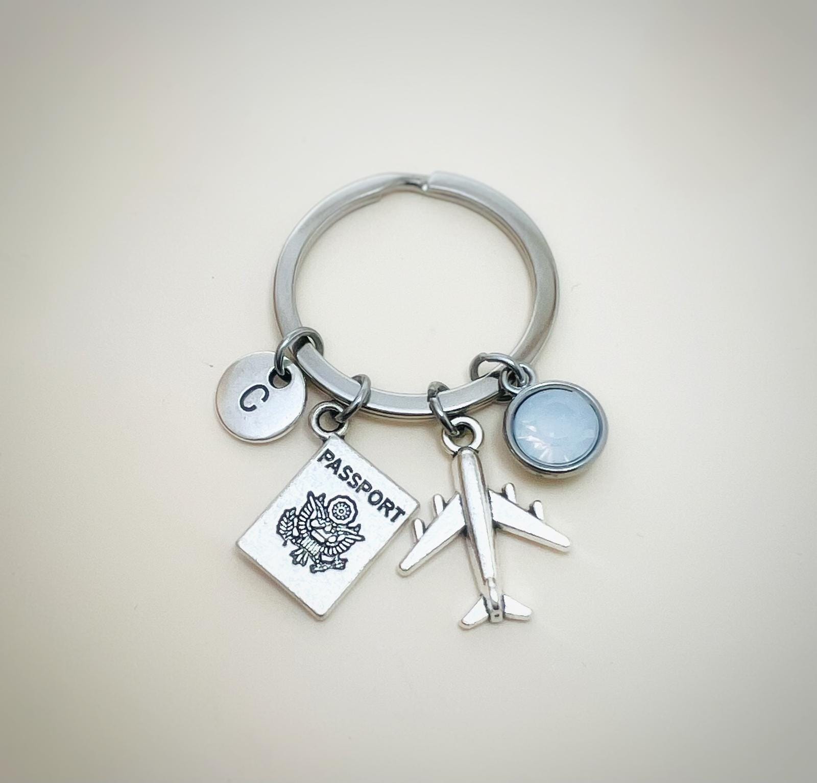 Personalized airplane keychain, pilot gift, stewardess gift, travel keychain, travel luggage accessory, travel keychain